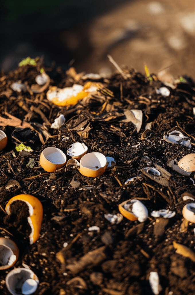 Use restos de frutas, cascas de ovos, borra de café e folhas secas na composição.