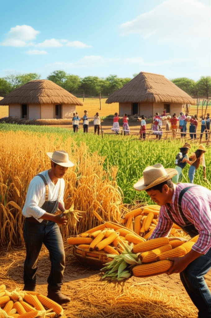 A vida na roça valoriza o trabalho em comunidade, com ajuda mútua entre vizinhos e familiares.