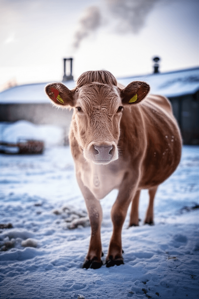 O manejo adequado, incluindo o uso de vestimentas e aquecedores, ajuda a proteger as vacas do frio excessivo.