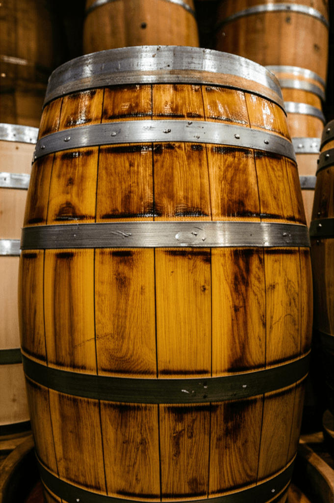 Barril de carvalho é comum, mas outros tipos de madeira podem ser utilizados para variações no sabor.